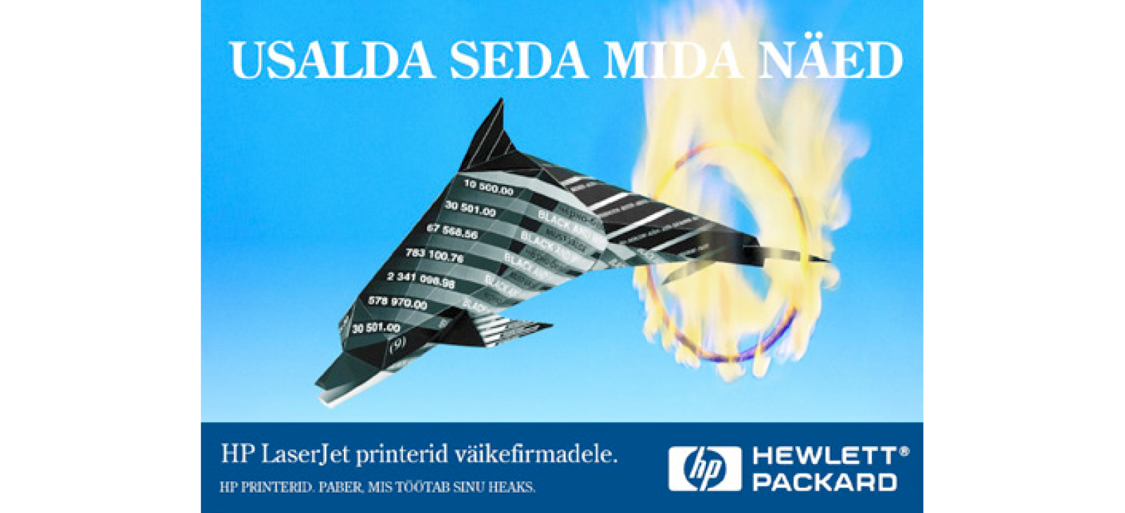 Hewlett-Packard billboardBillboard advertising for Hewlett Packard in the same visual style as internationally in 90-ties. This idea and artwork was done in Estonia, Bates Saatchi&Saatchi Estonia. Headline: “Trust what you see”.