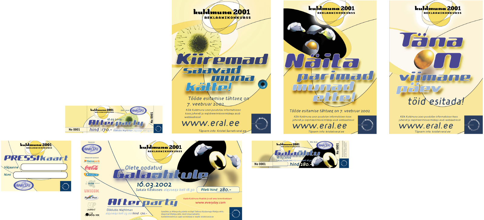 Kuldmuna 2001Visual identity concept for Estonian advertising and graphic design competition KULDMUNA (Golden Egg) 2001.