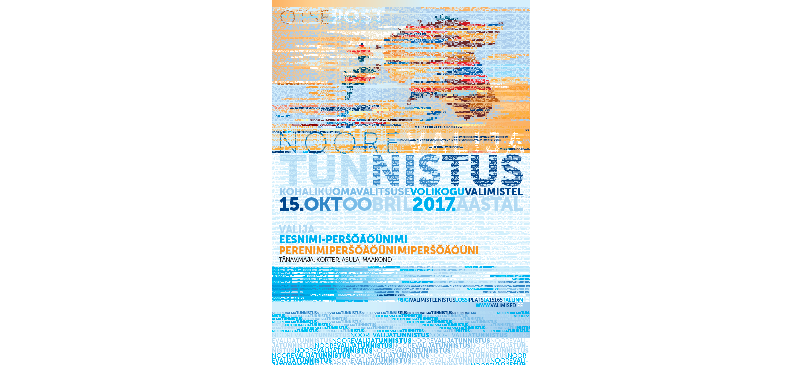 Layout design for FIRST TIME VOTERS diploma. Sent by Estonian state election committee to all non-adult first time voters, to boost participation in local government elections. All visual elements and patterns created by using only fonts in different size and color.