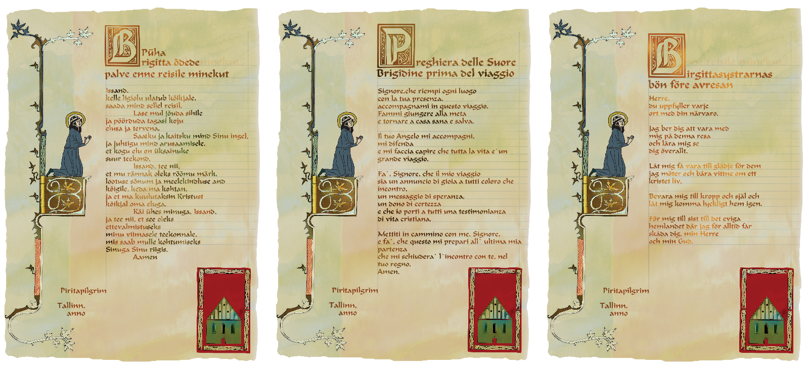 Pirita abbey diplomaDesign of prayers for PIRITA KLOOSTER in Pirita, Tallinn, Estonia, a branch convent of St Birgitta’s order. The nursery was re-established after demolition in 16th century.