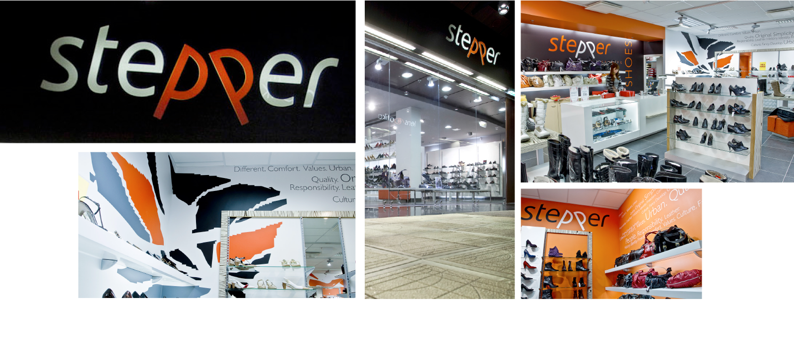 Graphic and spatial visual identity for shoes retailer