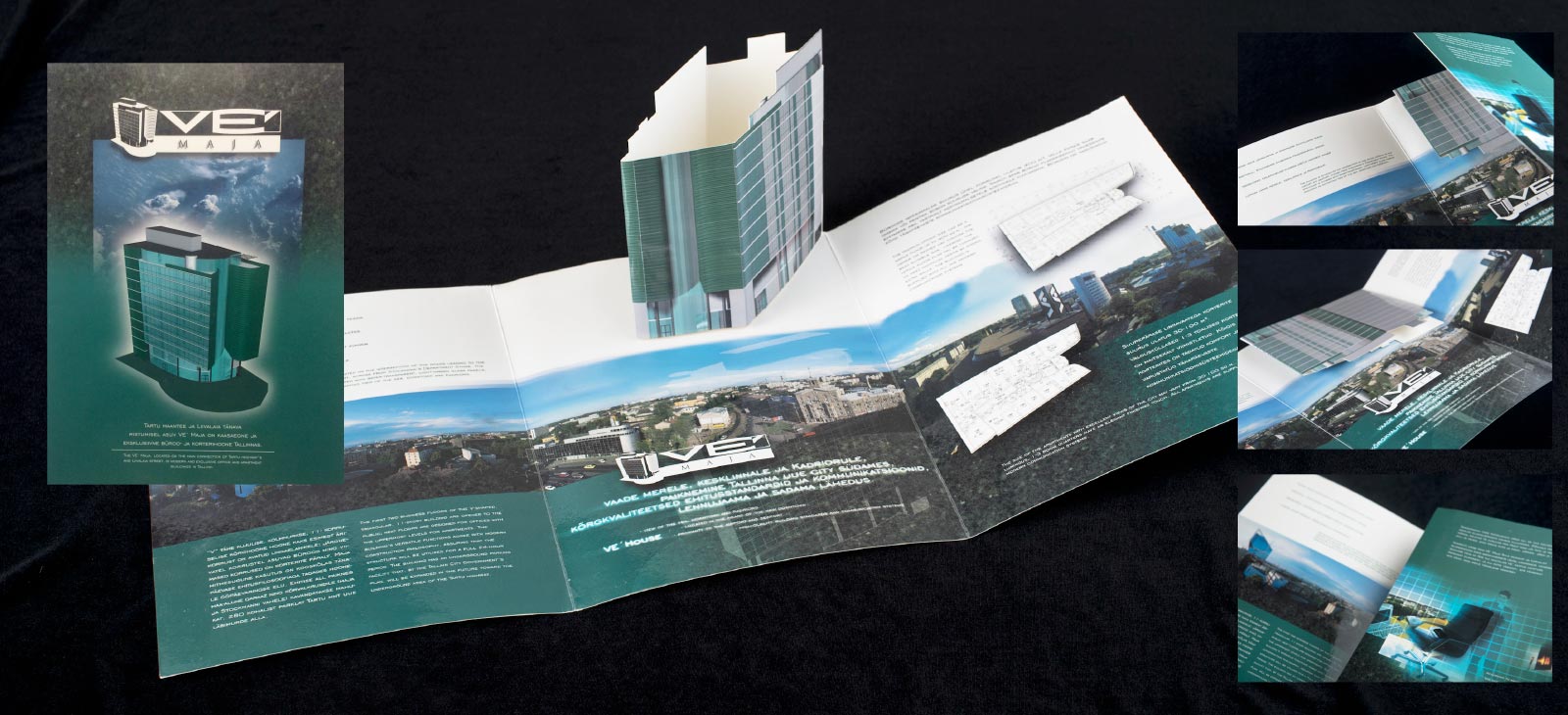 VE House promotionalDesign of sales promotional print for real estate development VE MAJA. At the time of design process, the building does not exist. The folded detail expressed the overal visual shape of the building.